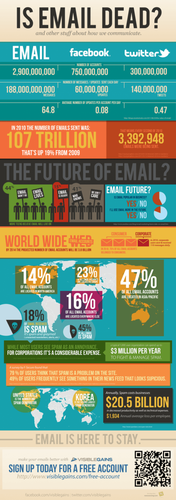 O infográfico abaixo mostra que o e-mail está longe de morto e continua sendo uma boa oportunidade de fazer marketing.