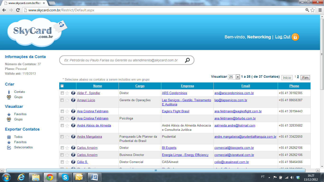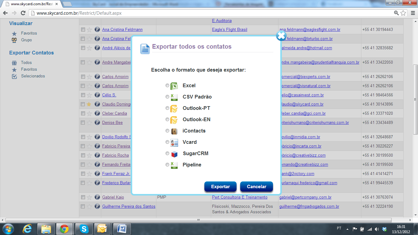 Todos os dados da base podem ser exportados para diversos formatos, como Excel, Outlook, entre outros, possibilitando ao profissional utilizar a sua base de dados em outros sistemas, inclusive alimentando o seu CRM e/ou ERP.